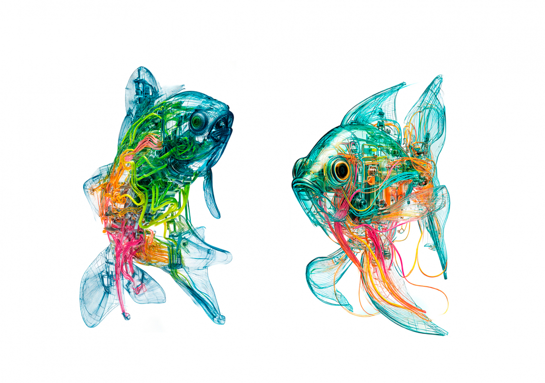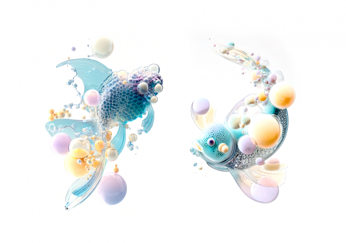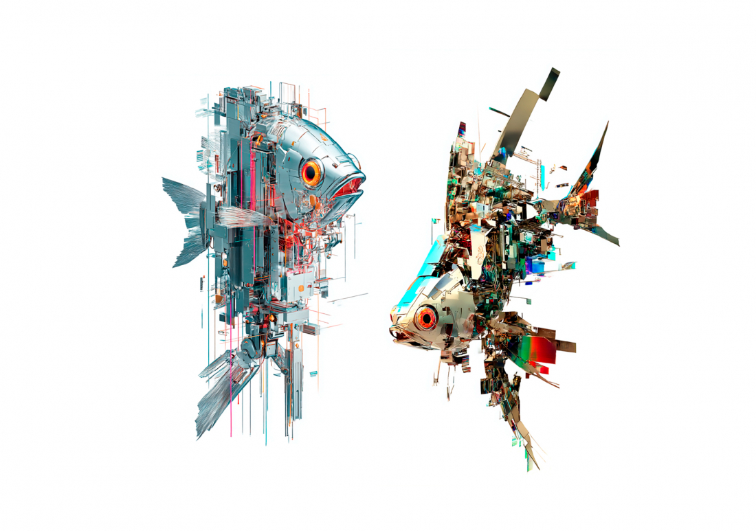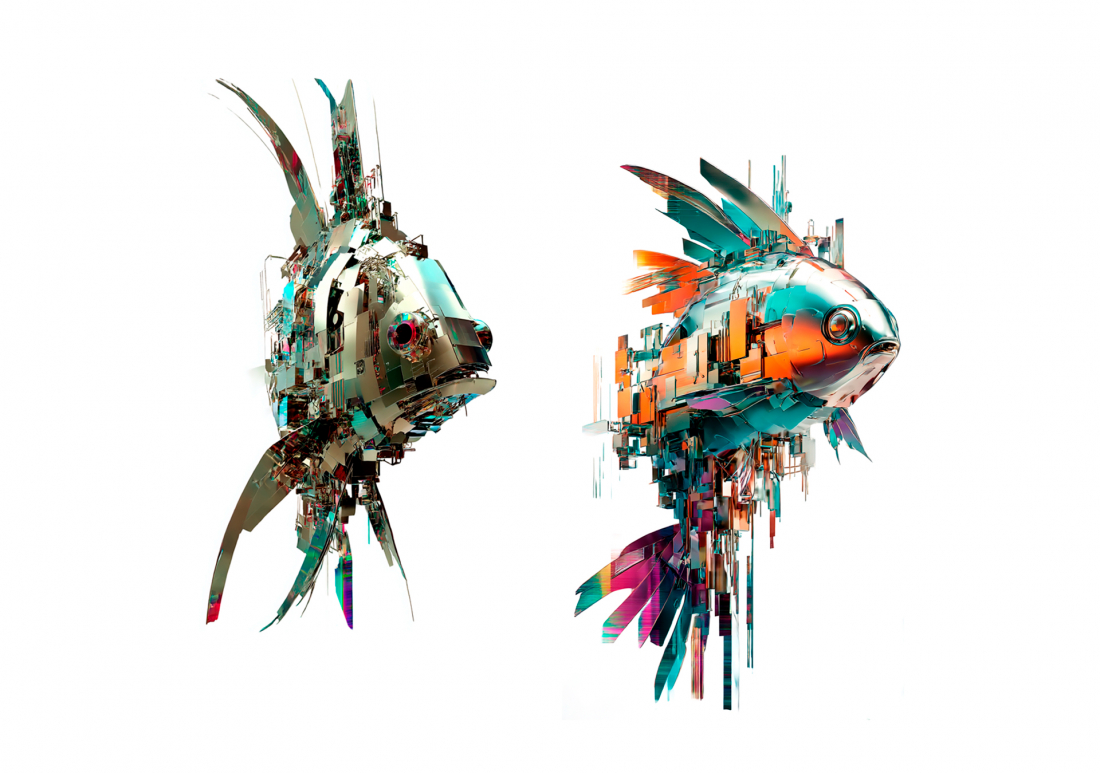Atlante generativo di pesci tra ai, colore, materia e linguaggio.