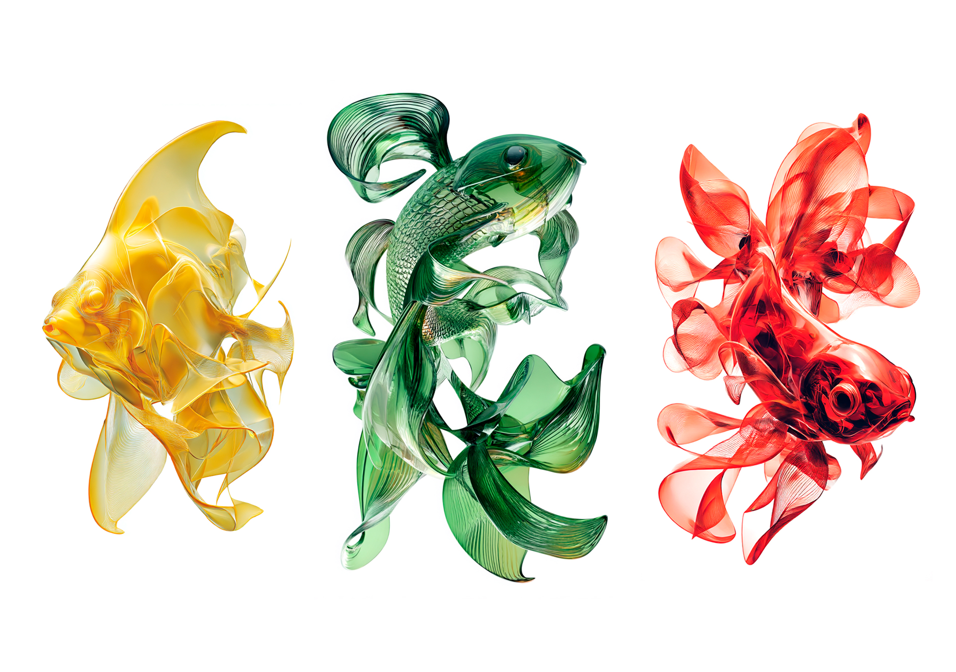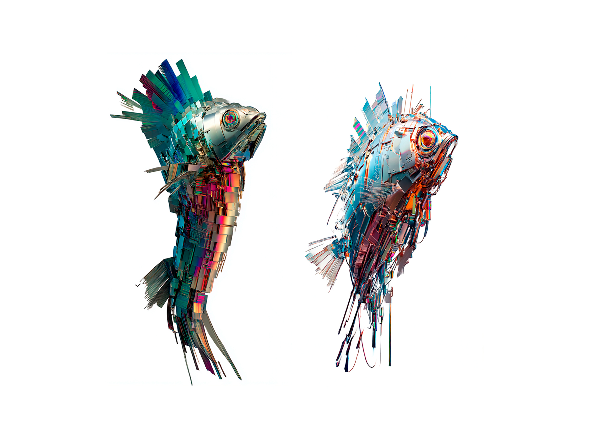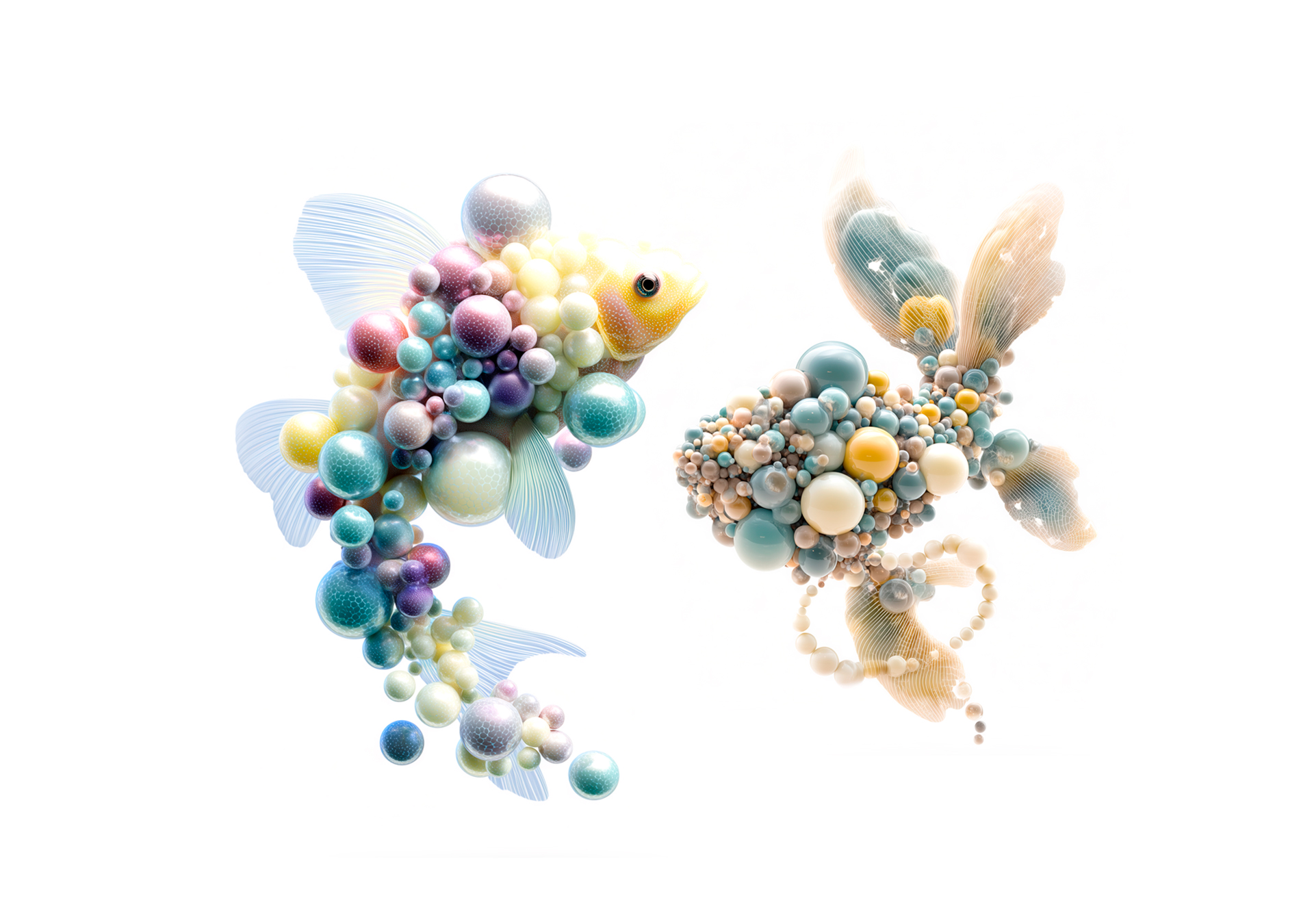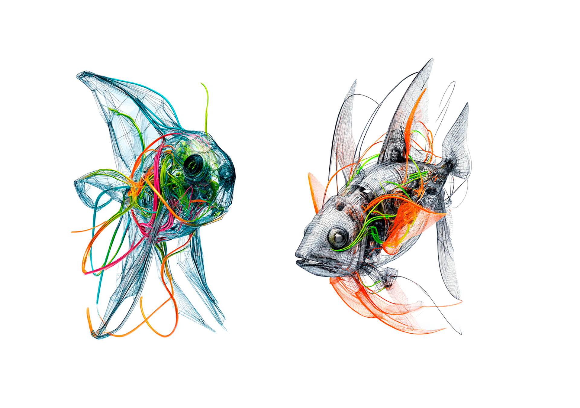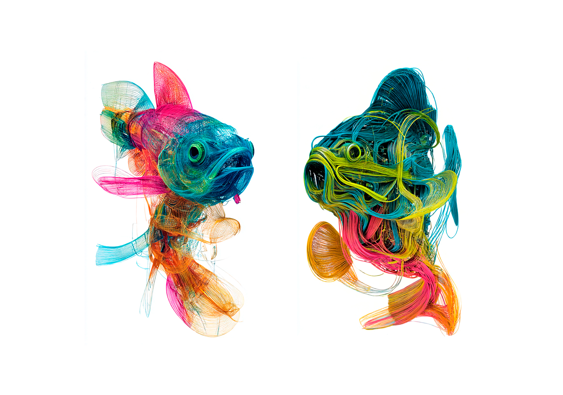 Atlante generativo di pesci tra ai, colore, materia e linguaggio.